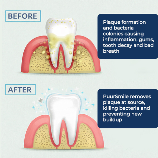 PuurSmile uses 140 PSI professional power to flush out bacteria hiding in your mouth. It turns ordinary water into antibacterial mouthwash serum that removes 99% of plaque, kills bad breath at the source, and stops gum bleeding 85% faster than traditional flossing—in just 2 weeks.